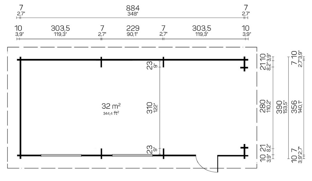 | Wände | massive 70 mm Blockbohle mit doppelter Nut + Feder |