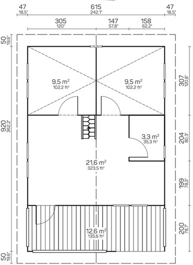 | Bohlenstärke | 70 mm mit doppelter Nut+Feder |