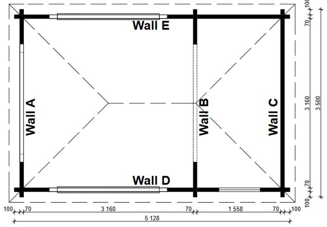 | Fußboden (innen) | 28 mm Nut+Feder-Hobeldielen |