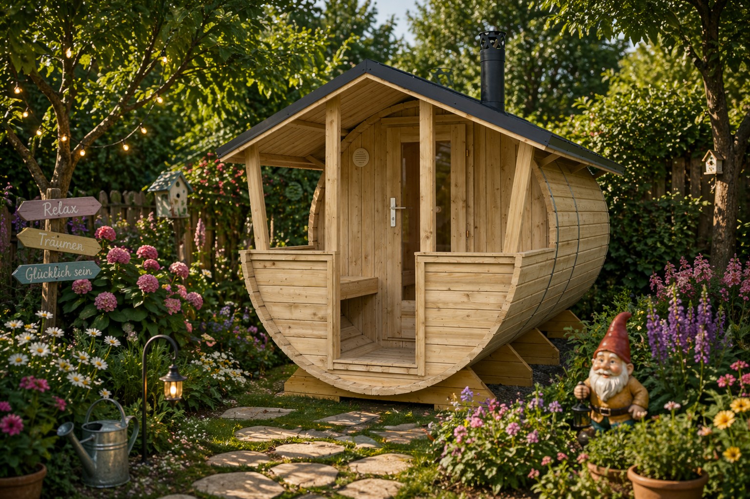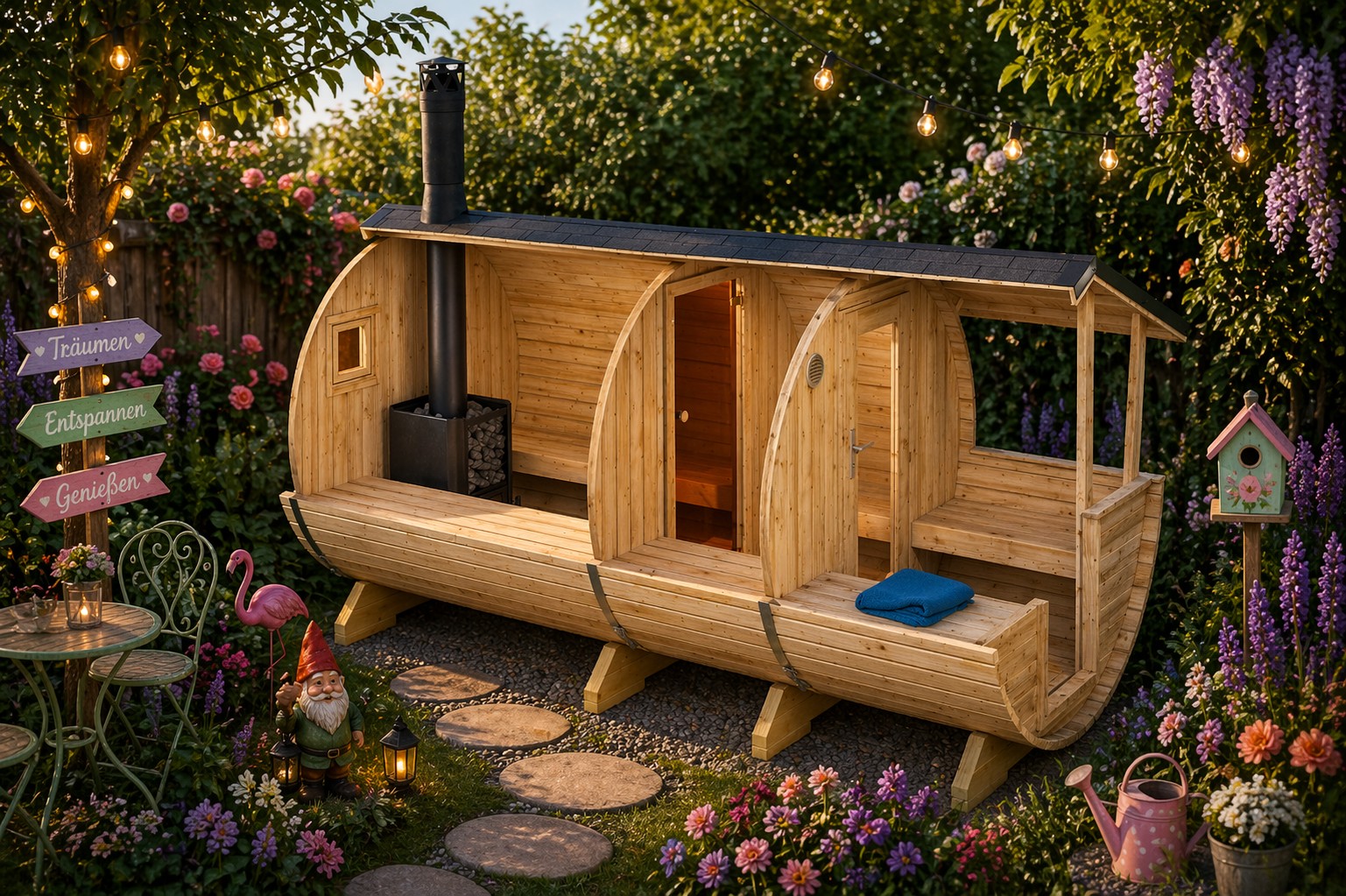 2-Raum-Saunahaus im verspielten Look