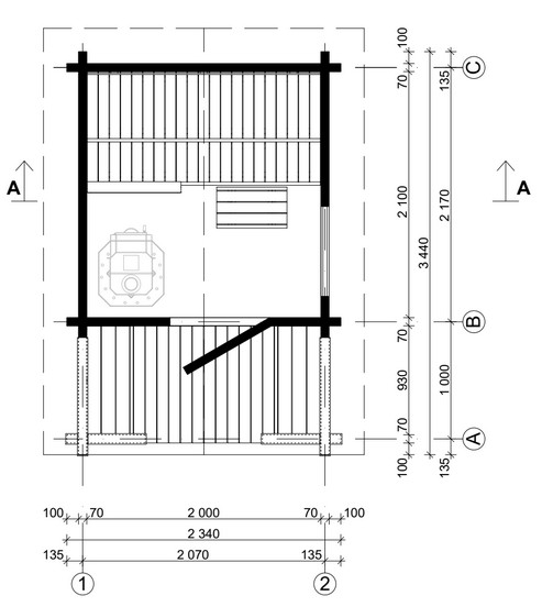 | Blockbohlenstärke | 70 mm mit doppelter Nut+Feder |
